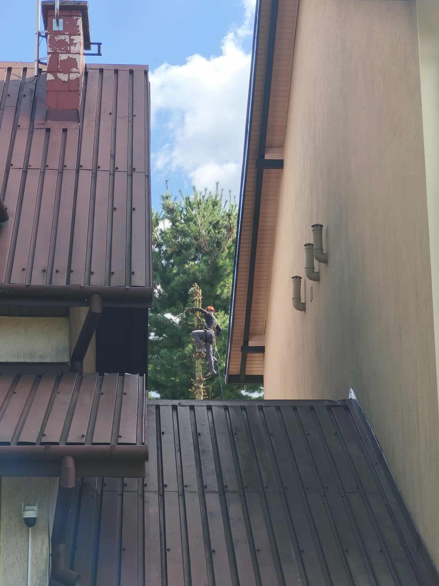 Fachowcy godni polecenia. Warunki były trudne z uwagi na bliskie usytuowanie drzew w pobliżu domu i linii energetycznej, prace wymagały użycia podnośnika. Cena usługi niewygórowana! POLECAM.